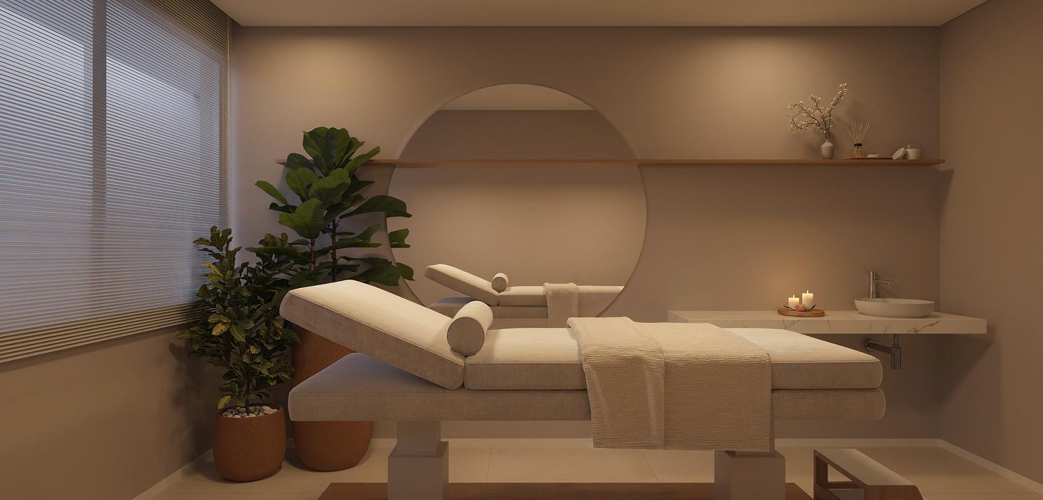 Espaços e serviços de spa, academia e salas multiuso para estimular o convívio e o autocuidado.